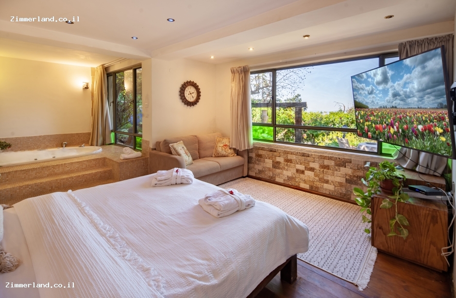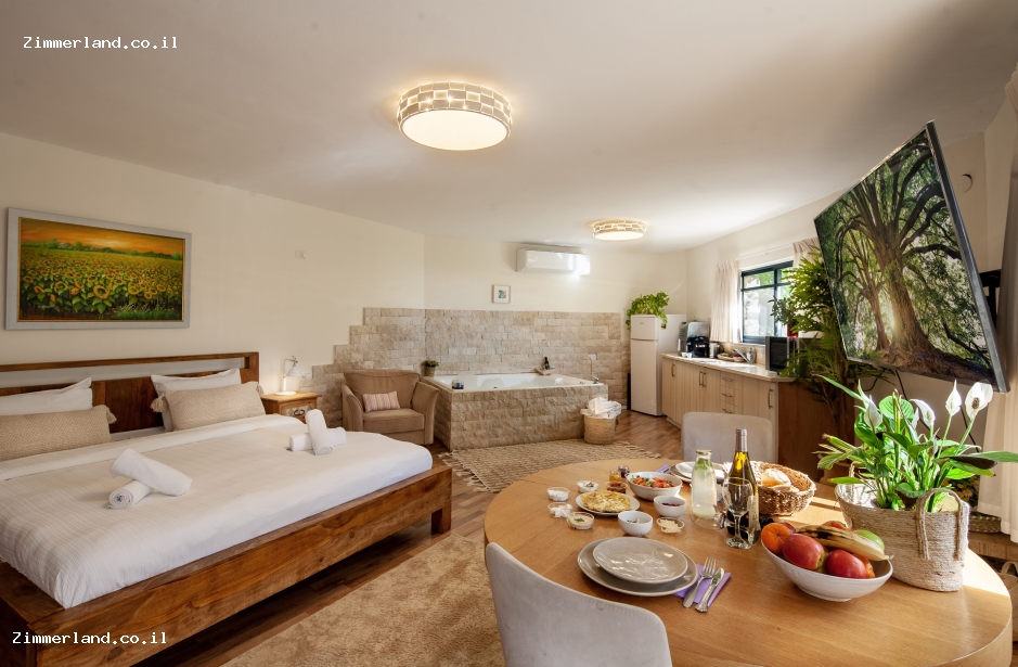 סוויטת גליל היא סוויטה משפחתית גדולה עם חדר שינה נפרד - מתאימה לאירוח של עד 5 נופשים.