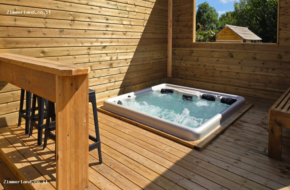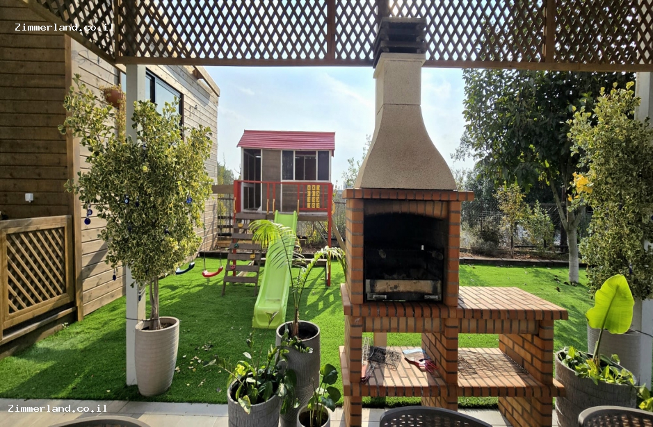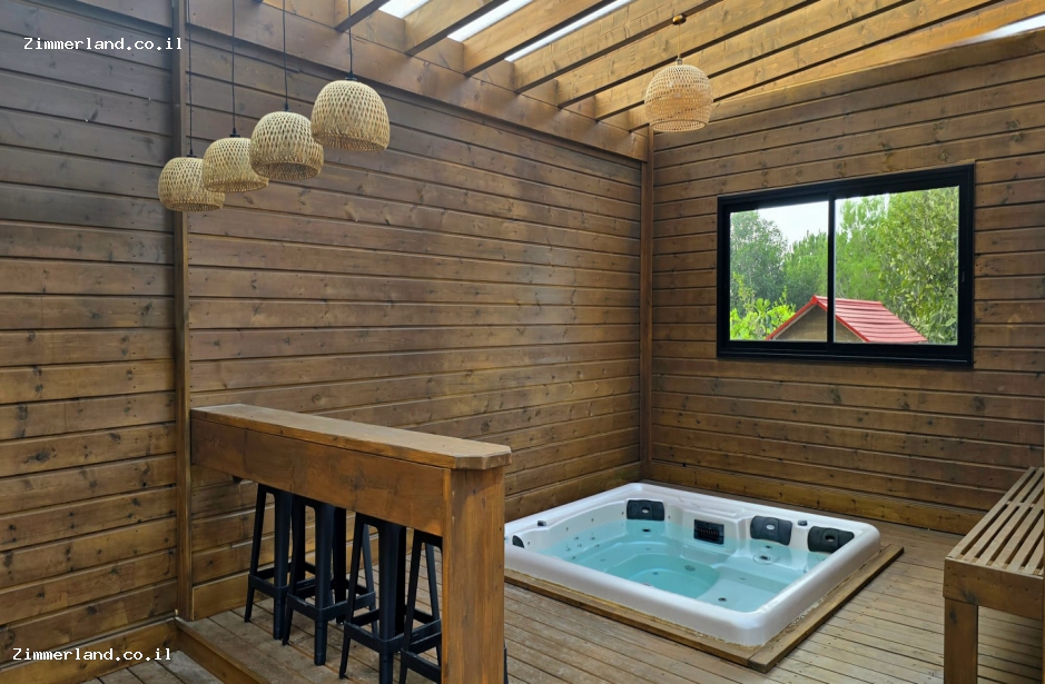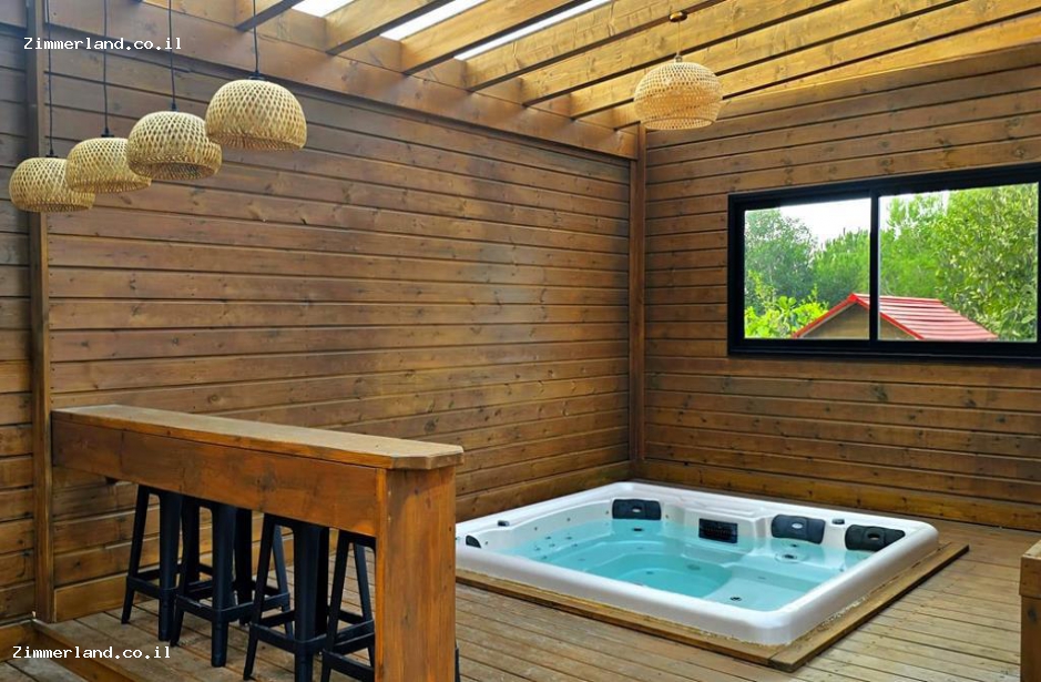 בחצר גדולה מוקפת בנוף של חורש, תיהנו מבריכת שחייה גדולה ומגודרת - מחוממת ומקורה בחורף וג'קוזי ספא מרווח, ריהוט גן, שמשיות ומיטות שיזוף, פינות ישיבה מוצלות ופרגולה גדולה, מדשאות נדנדות ומגלשה לילדים, מטבח חוץ מסודר, תאורת גן לשעות הערב ומנגל אבן.