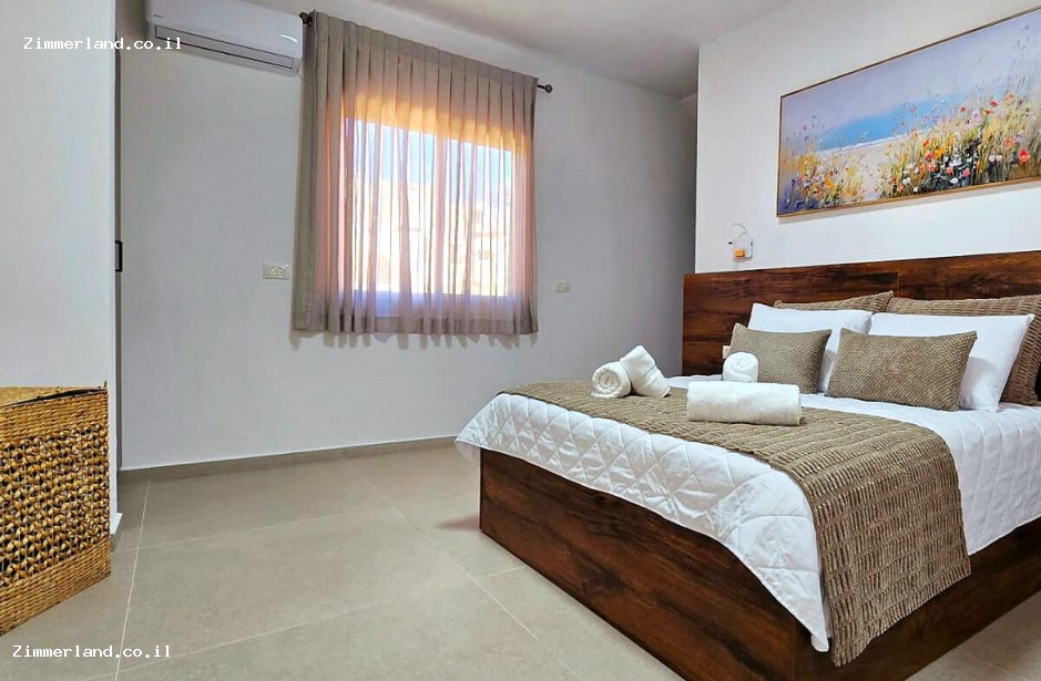בקומה השנייה – יש עוד 2 חדרי שינה עם מיטה זוגית, מיזוג וטלוויזיה בכל חדר וחדר רחצה מאובזר.