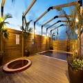 החצר של אחוזת הספא גדולה במיוחד, מציעה לכם מתחמי ישיבה מוצלים, דשאסינטטי איכותי, משטחי דק עץ, ג'קוזי ספא מקורה גדול במיוחד, סאונהיבשה, שולחנות קפה וארוחות, צמחייה ירוקה ועשירה.