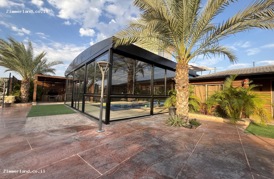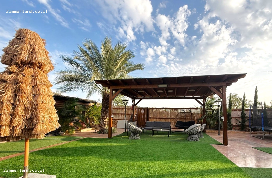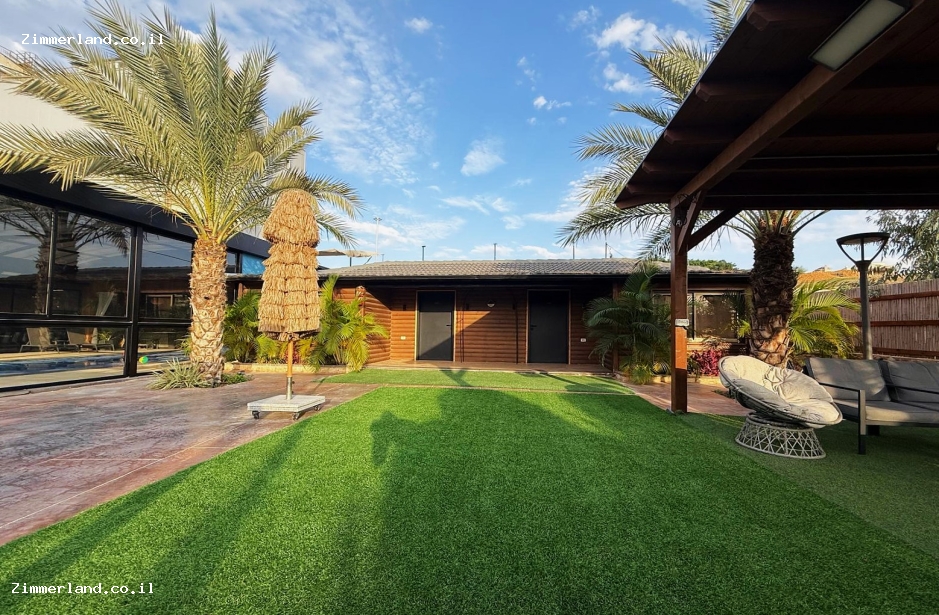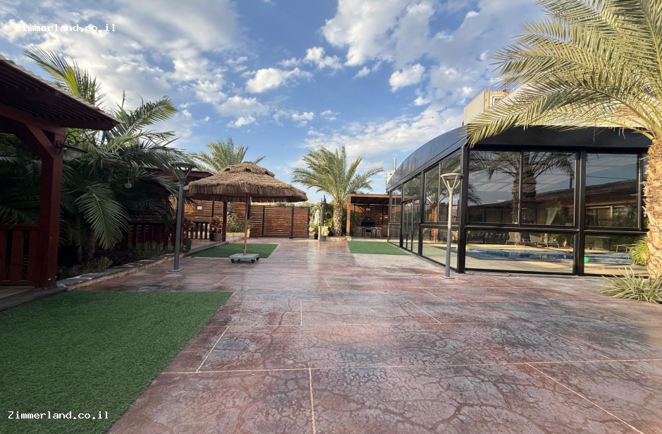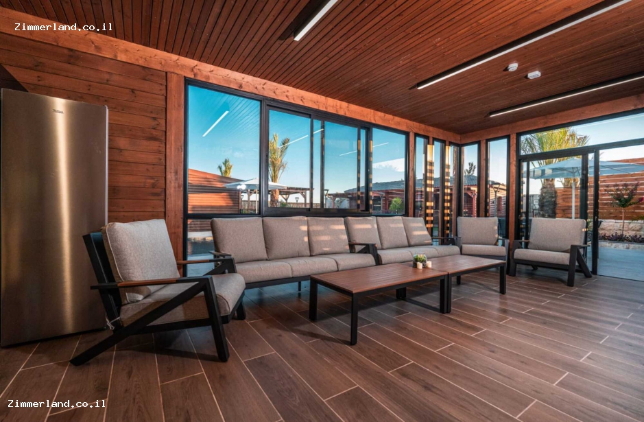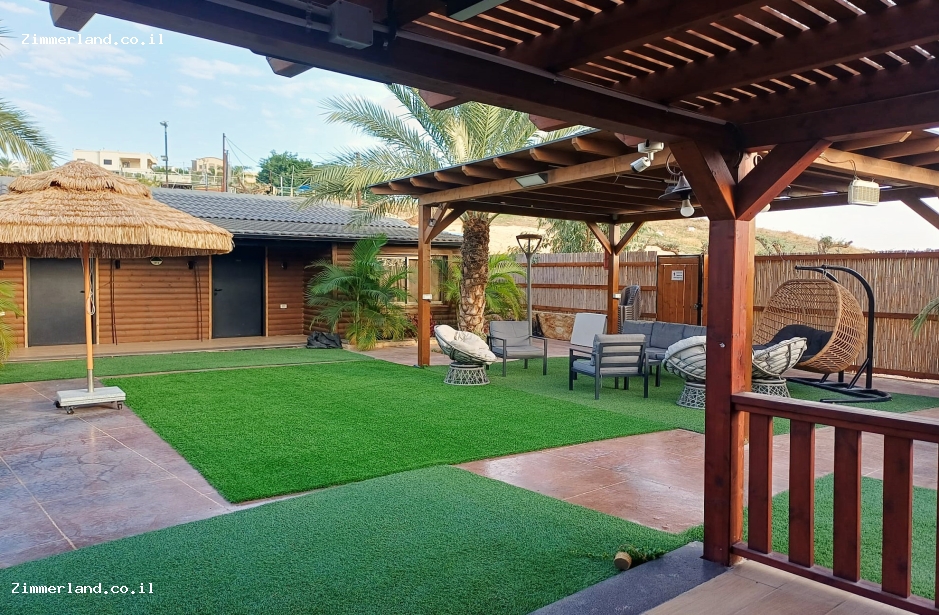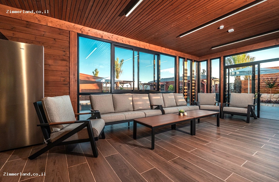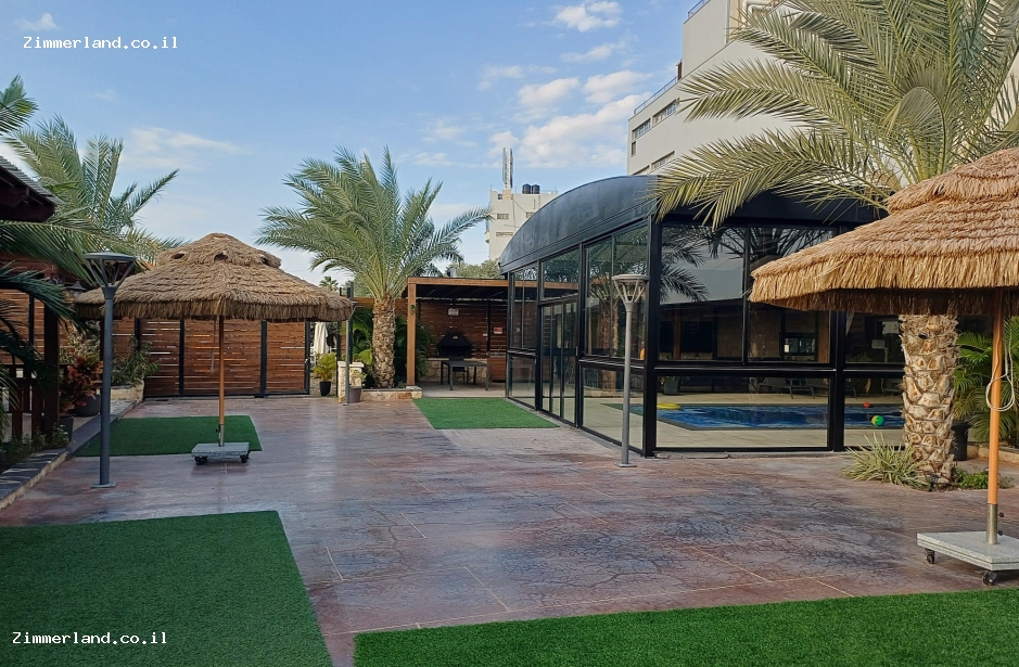 לצימרים יש חצר גדולה ומשותפת, עם בריכת שחייה גדולה – מגודרת, מחוממת ומקורה בחורף.