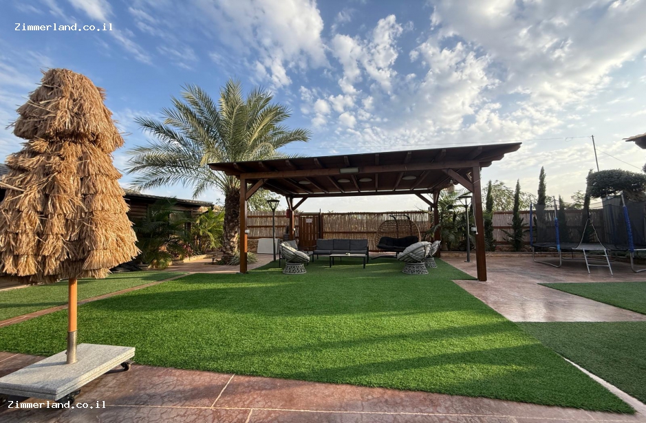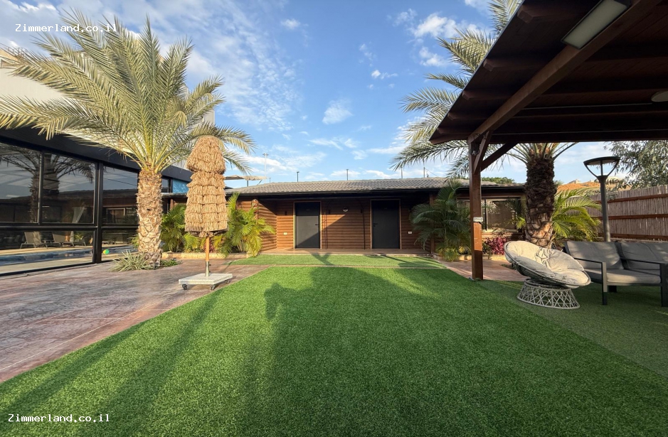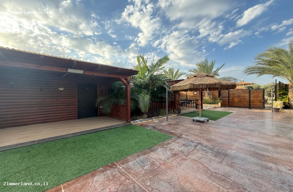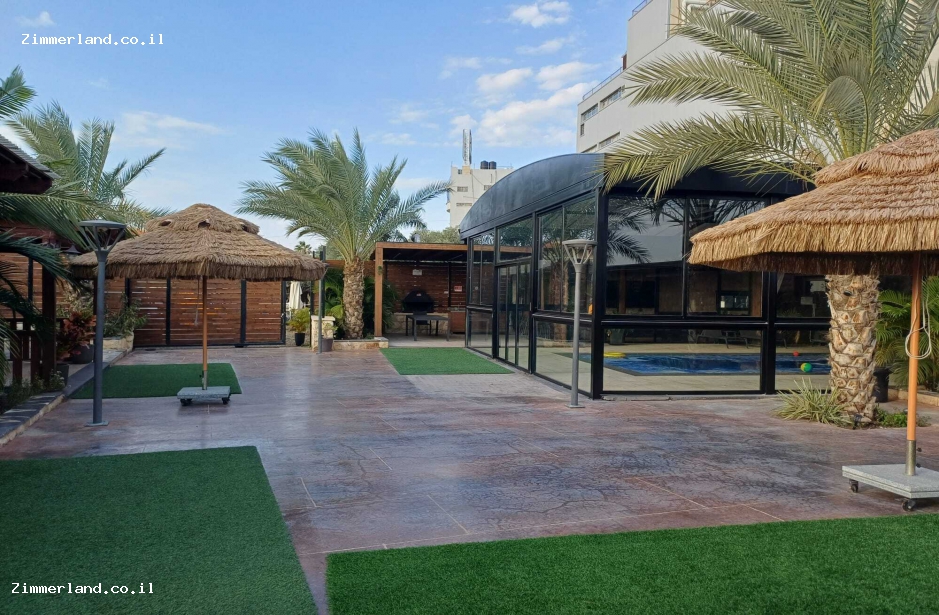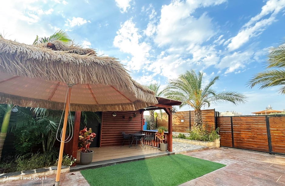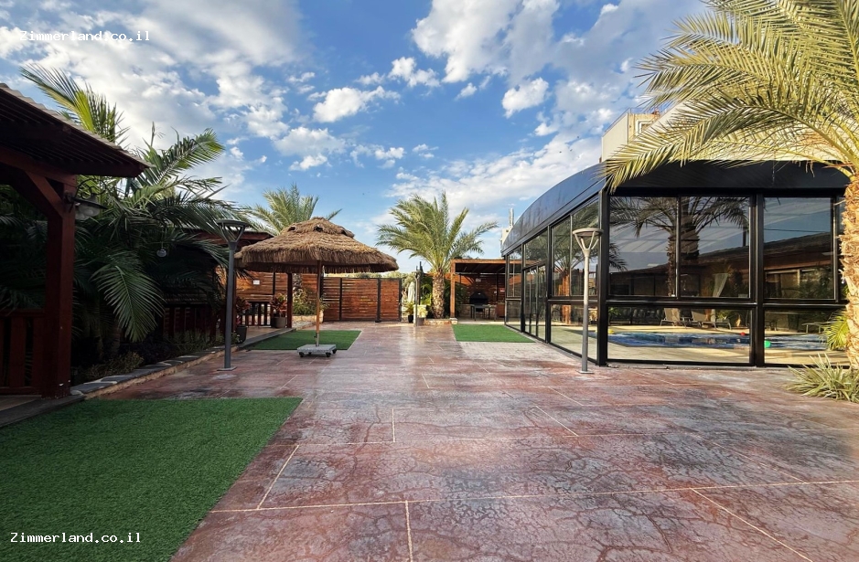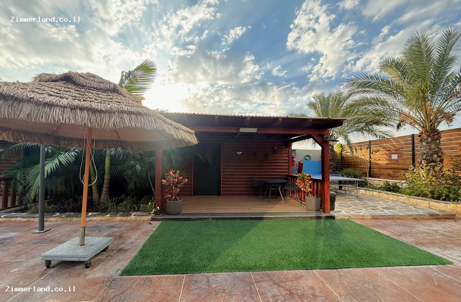לצימרים יש חצר גדולה ומשותפת, עם בריכת שחייה גדולה – מגודרת, מחוממת ומקורה בחורף.