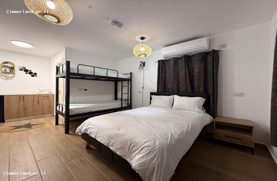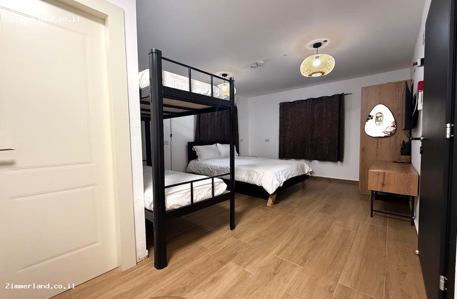 בצימרים הזוגיים יש חדר שינה זוגי ומיטת קומתיים.
