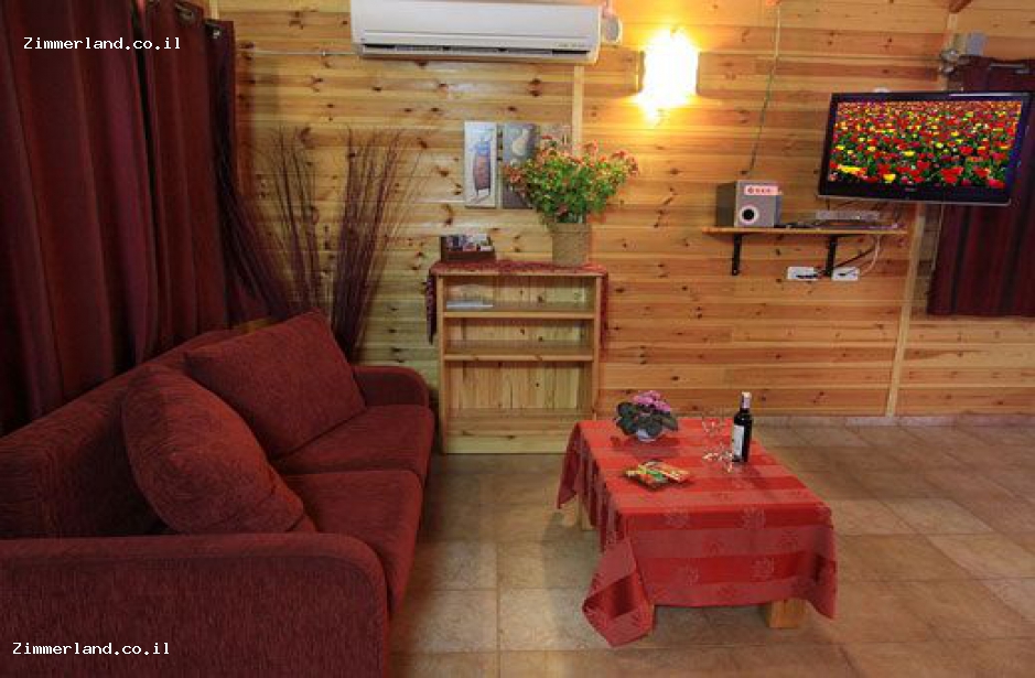 פינת אוכל ופינת סלון זוגי, מסך טלוויזיה 32 אינץ' עם מבחר ערוצי צפייה ומיזוג אוויר.