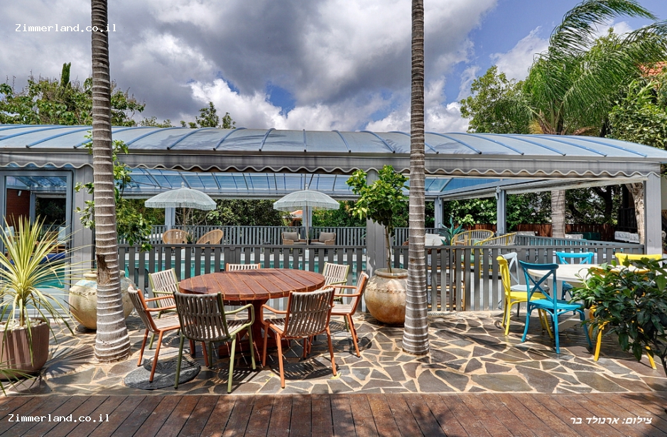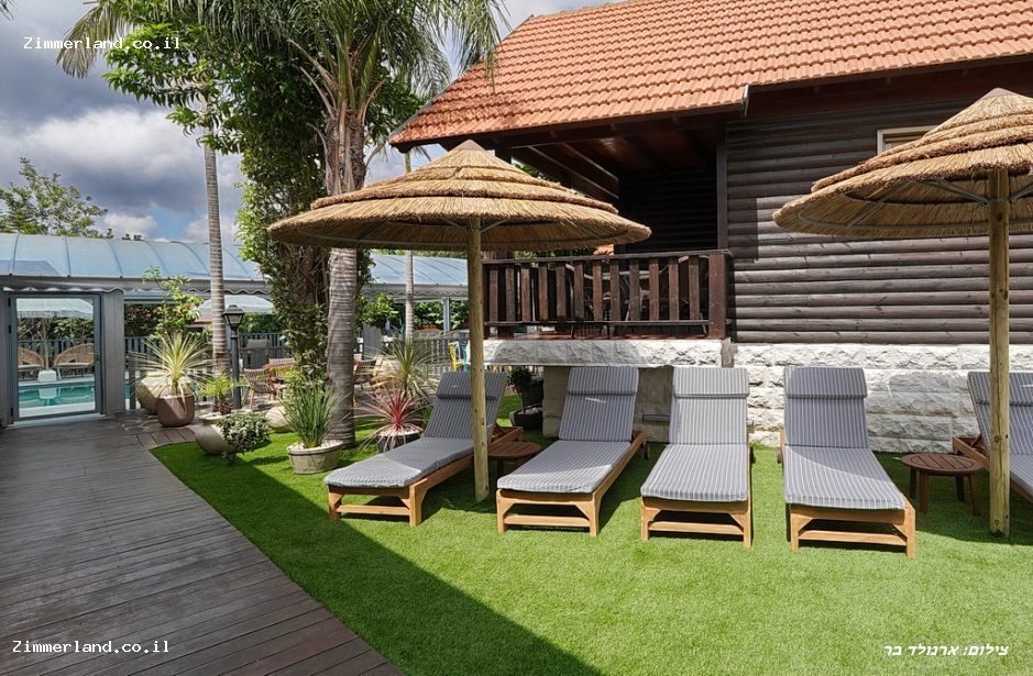 החצר האטרקטיבית מעידה על רמת האירוח הגבוהה, מתחם הבריכה תופס את תשומת הלב בעיצובו הייחודי, מתחם סגור, מחומם ומקורה בחורף, עם ריהוט במבוק איכותי, תאורה בשעות הערב, ערסלים ועוד. במתחם החצר לרשותכם ג'קוזי ספא זרמים וסאונה יוקרתיים, מדשאות ופינות ישיבה רומנטיות, מתקנים לילדים, שולחן פינג פונג פינות ברביקיו מאובזרות, חדר אוכל ענק ועוד.