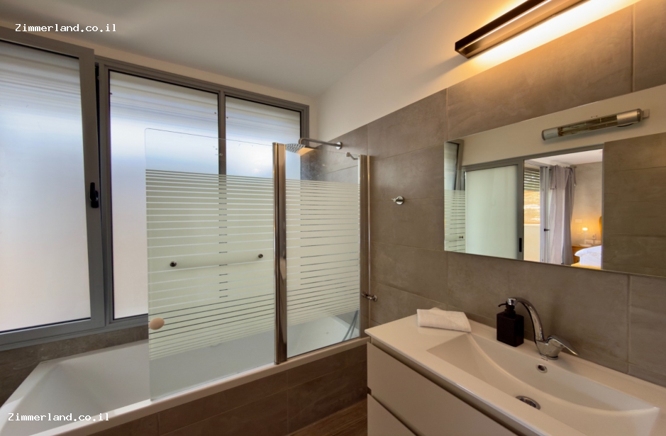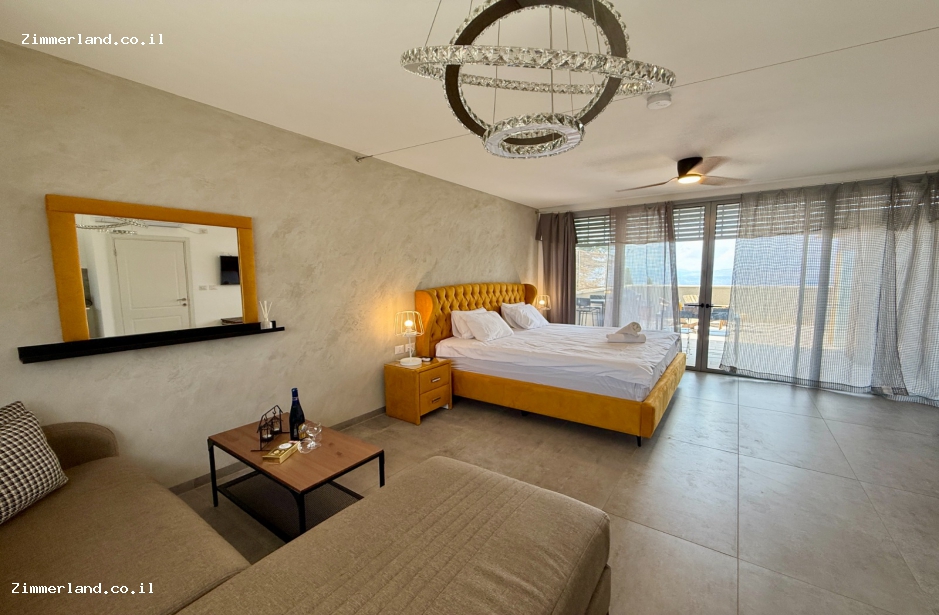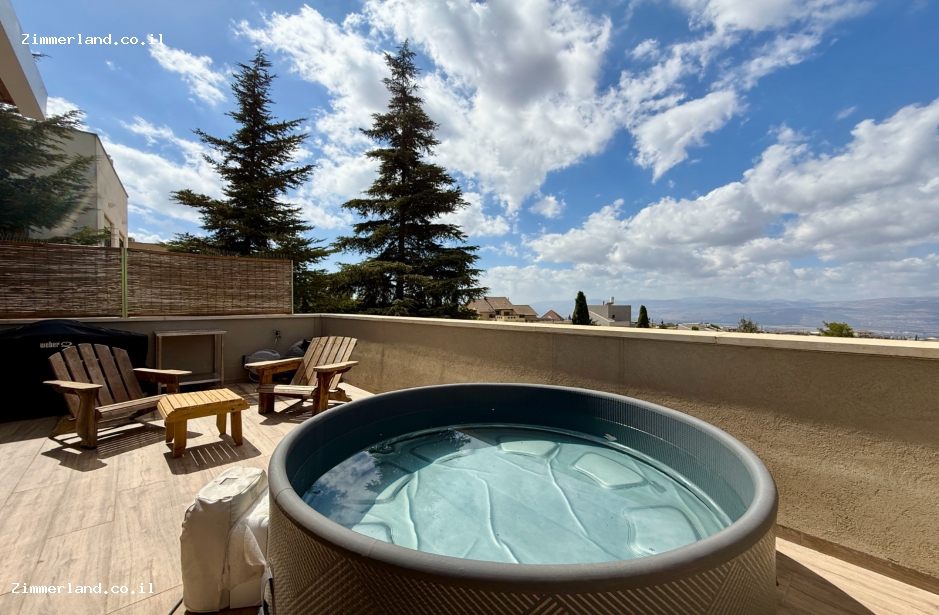 ויש 2 סוויטות עם מרפסת נוף הפונה להרי נפתלי ולחרמון, עם פינות ישיבה מול הנוף, ג'קוזי ספא, סאונה ופינת ברביקיו.