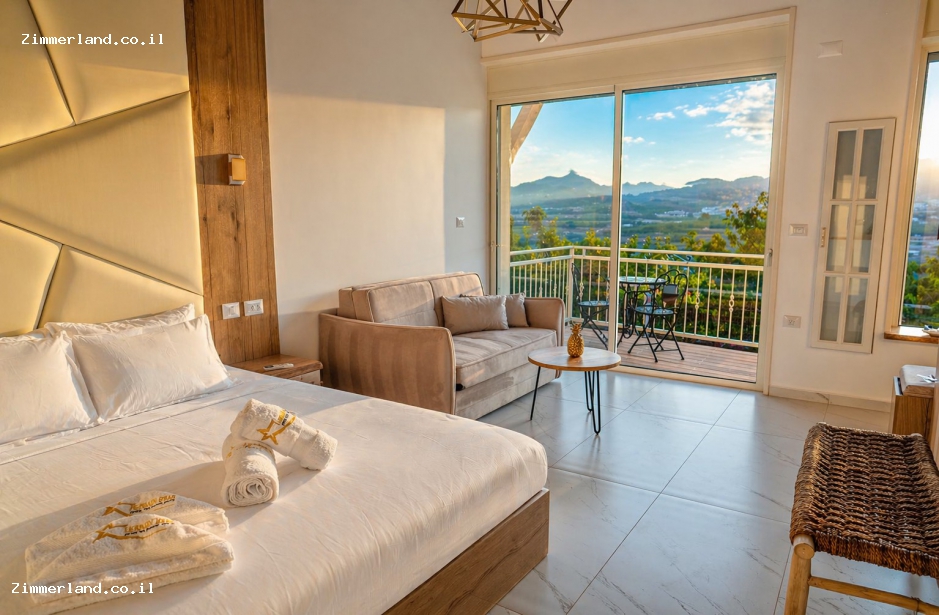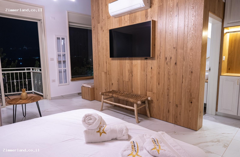 4 סוויטות בנויות במתחם, בכל סוויטה אבזור מלא, חלל פתוח עם מיטה זוגית רחבה, ספה הנפתחת למיטה נוספת, מסך טלוויזיה בכבלים ומיזוג אויר, מטבחון מאובזר הכולל מכונת אספרסו, חדר רחצה מאובזר ומרפסת פרטית הפונה לנוף עם פינות ישיבה.