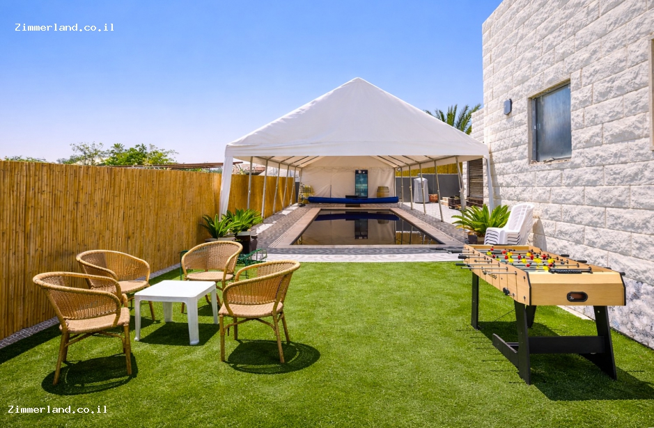 במתחם יש 7 יחידות נופש מרווחות ומאובזרות לעילא וחצר גדולה ומטופחת עם בריכת שחייה גדולה – מחוממת בחורף.