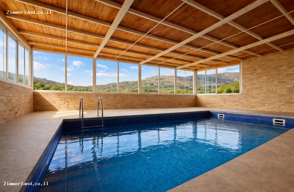 בחצר המשותפת של 2 הסוויטות ממתינה לכם בריכת שחייה מפנקת, מחוממת ומקורה בחורף הפונה לנוף ציורי.