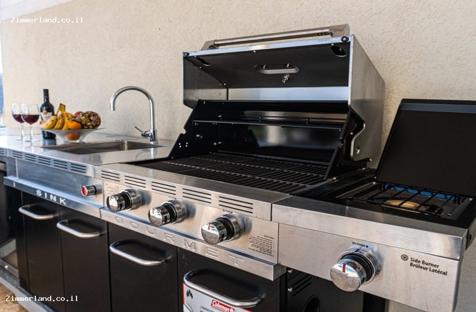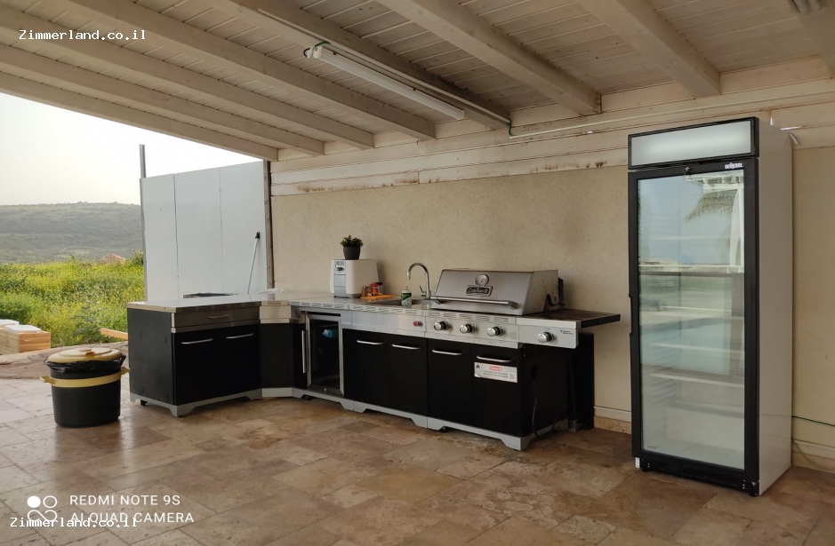 החצר היא האטרקציה של הנופש - מתחם ענק עטוף במדשאה, פרחי נוי, תאורת גן, מערכת הגברה, בריכת שחייה ענקית, פינות ישיבה ורביצה, ריהוט גן איכותי, מתחם מטבח חיצוני עם שולחן אוכל ופינת ברביקיו ומנגל גז חדש.