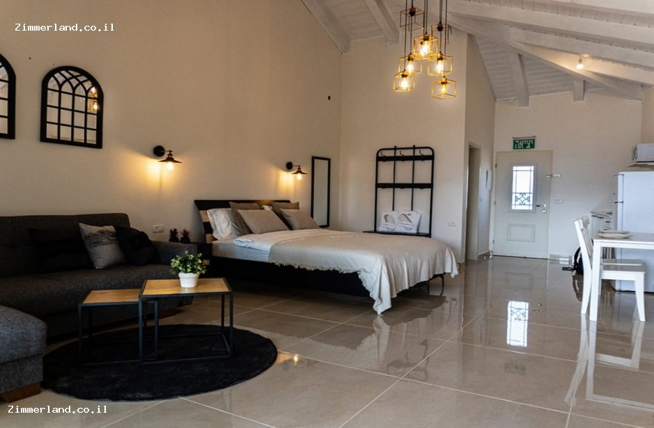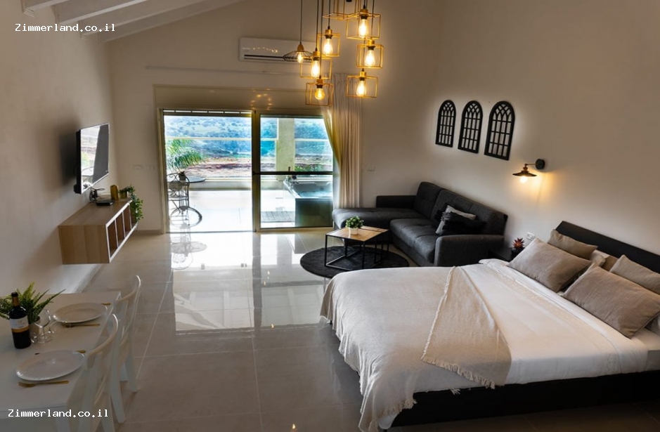 סוויטות נוספת ומרווחת מעוצבת כחלל סטודי אחד, מעוצבת בחן רב ומאובזרת באופן מלא. עם ספה נפתחת, ג'קוזי גדול. מתאימה לאירוח 6 אנשים.