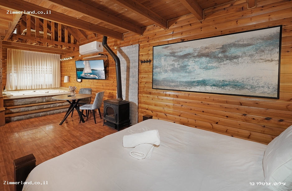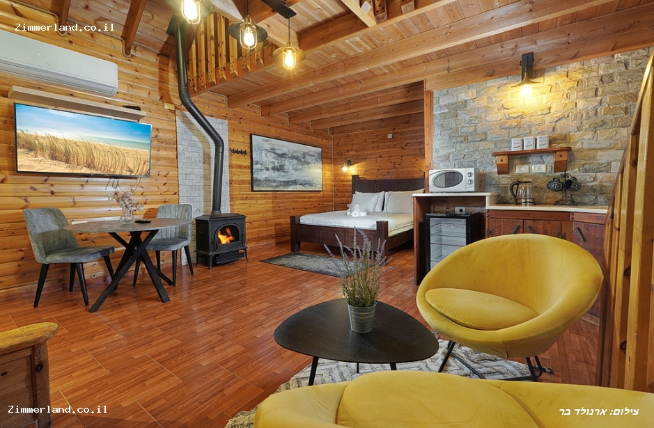 בצימר יש חלל מרווח עם מיטה זוגית, מצעים מפנקים וכלי מיטה איכותיים, פינת ישיבה ומסך טלוויזיה בכבלים, מיזוג אוויר, קמין עצים לחורף, מטבחון מאובזר הכולל מקרר מיני בר, מיקרוגל, מכונת קפה ומוצרי קפה איכותיים, כלי הגשה ופינת אוכל, ג'קוזי זרמים גדול, חדר רחצה נקי וקומת גלריה מרווחת עם 2 מיטות זוגיות נוספת ו4 מיטות יחיד. ניתן להוסיף מזרנים או מיטת תינוק.
