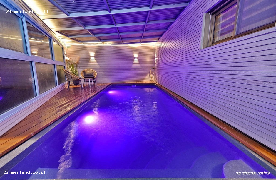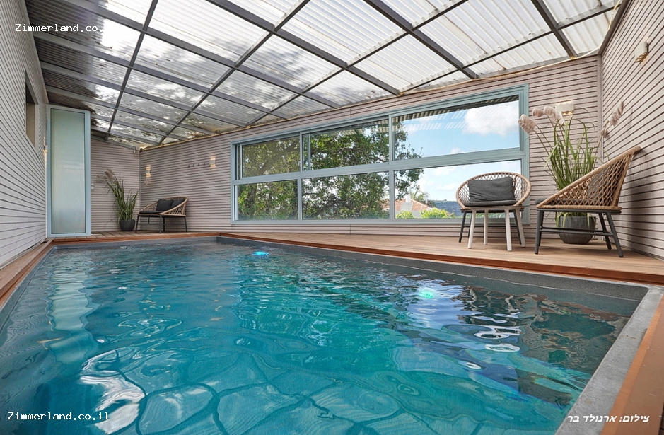 לצימר יש בריכת שחייה צמודה ופרטית לחלוטין - מחוממת ומקורה בחורף.