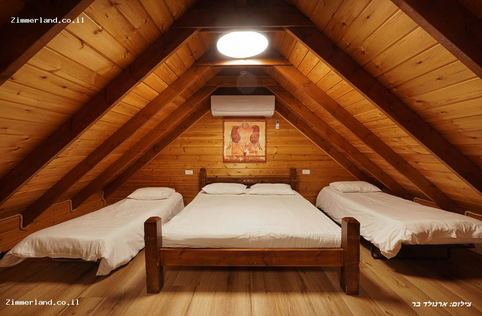 בסוויטת אל המעיין יש חלל מרווח עם מיטה זוגית וקומת גלריה עם 2 מיטות זוגיות ו 4 מיטות יחיד.