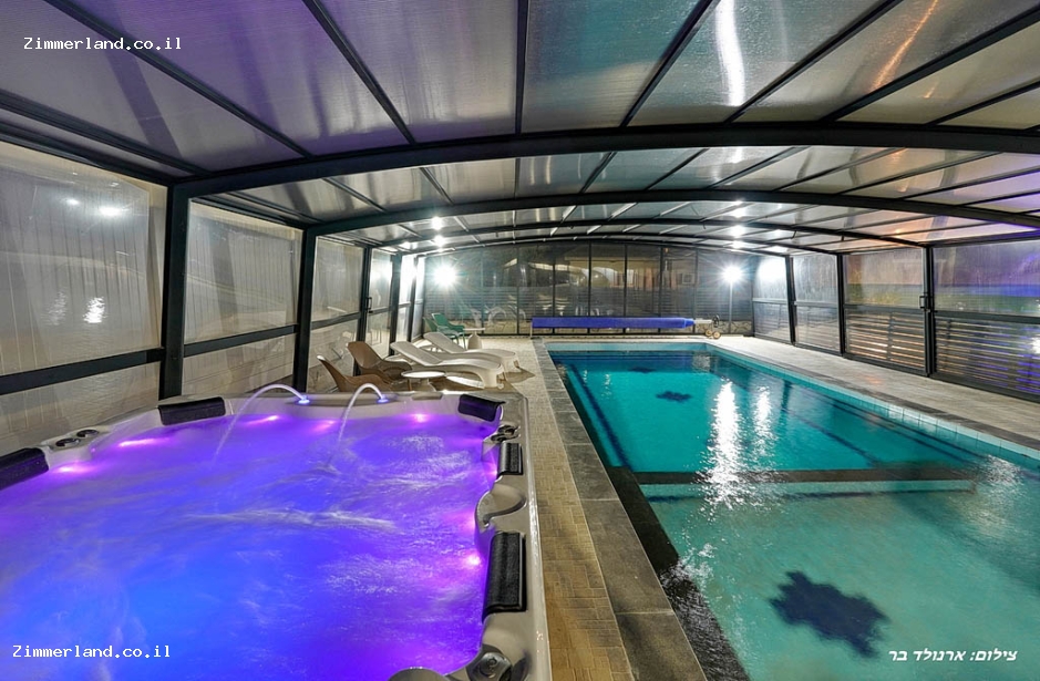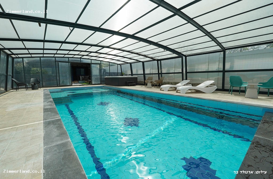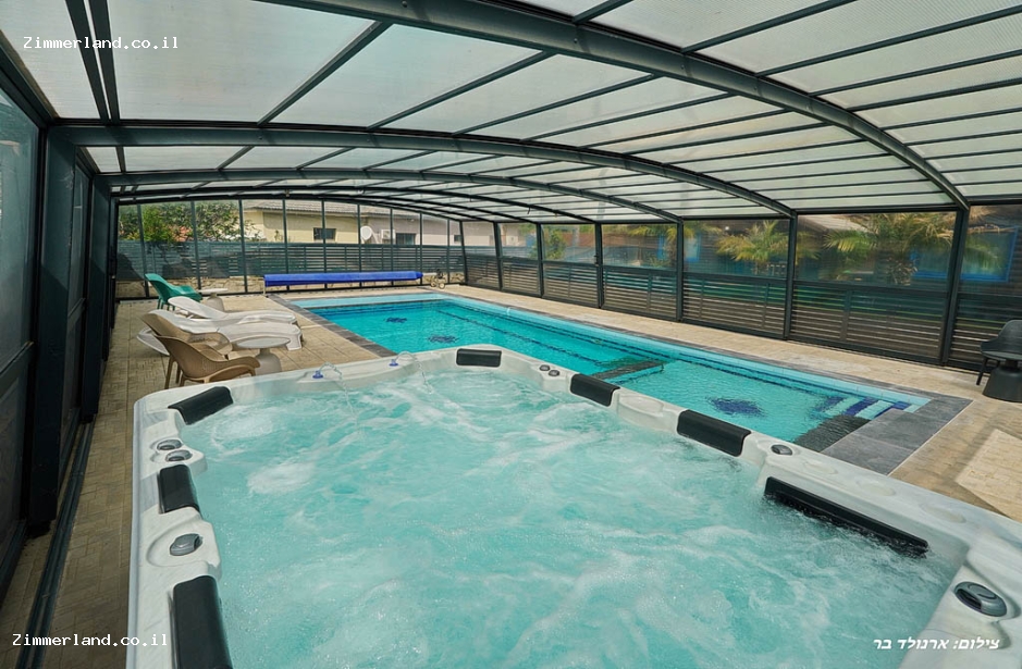 בחצר המופלאה והמטופחת מחכה לכם בריכת שחייה ענקית, מחוממת, מגודרת, מקורה בחורף, עם בריכת ילדים, ג'קוזי ספא זרמים ל 10 אנשים, מיטות שיזוף, מדשאה מטופחת, עמדת ברביקיו, ריהוט גן, שולחן פינג פונג, מתקני משחקים לילדים, פינות ישיבה מוצלות.