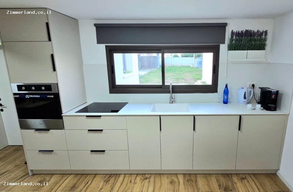 מטבח מאובזר בשלמות – כולל מקרר, מיקרוגל, תנור אפייה, כיריים אינדוקציה, מכונת קפה, מוצרי קפה, קומקום חשמלי וכלים להכנת ארוחות קלות ולהגשה. פינת אוכל נפתחת