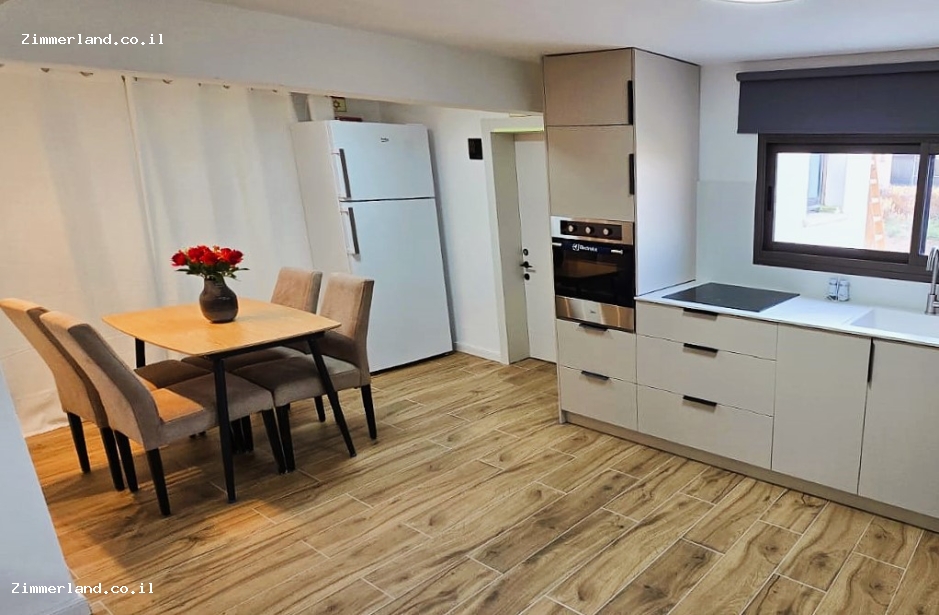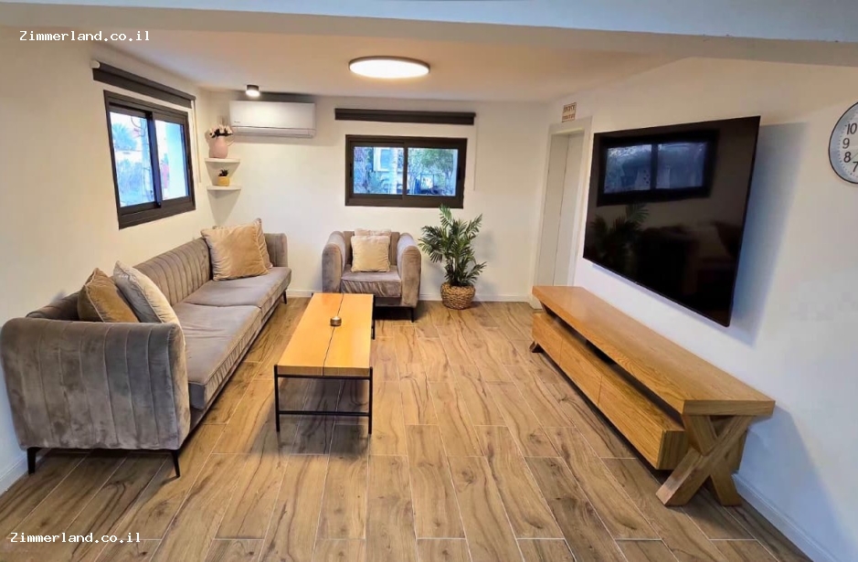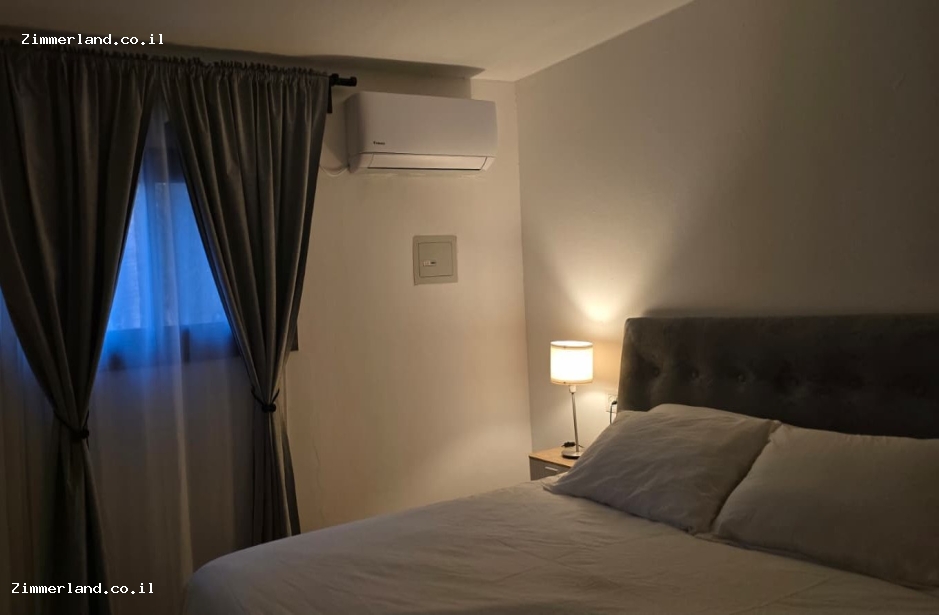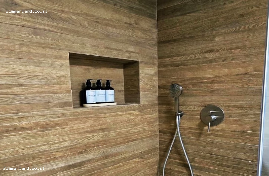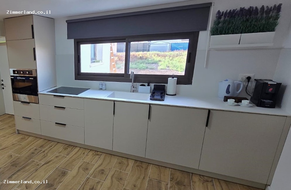 הצימר מכיל אבזור מלא ועיצוב פנים חמים ומזמין עם רצפה דמוית פרקט.