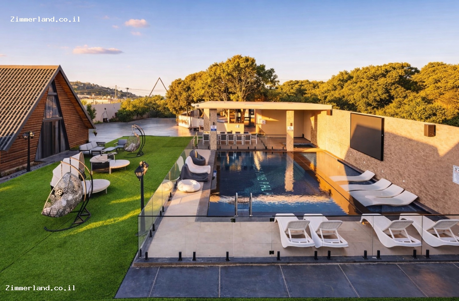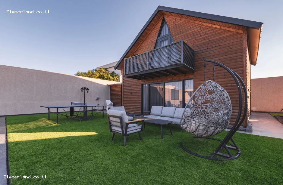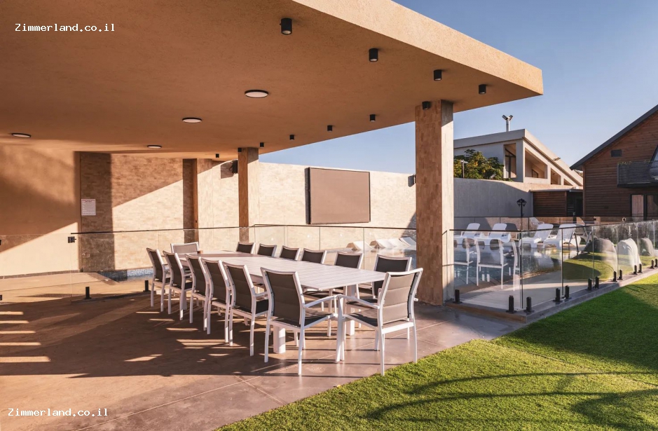 המתחם מציע מרחבים ענקיים עם ריהוט גן וערסלים, בריכת שחייה יפיפייה – מגודרת.