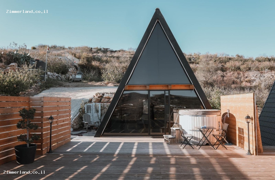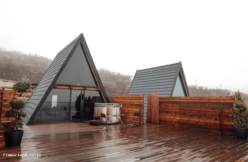 בית הפירמידה במג'דל שמס מזמין אתכם לחופשה בארץ עם הרגשה של חו"ל - רק 2 בקתות עץ לזוגות בלבד עם האט טאב פרטי השוכנות על צלע ההר מול נוף פנורמי הפתוח של הרי הגולן והחרמון. ומתחם משותף עם בריכת שחייה (בעונת הקיץ).