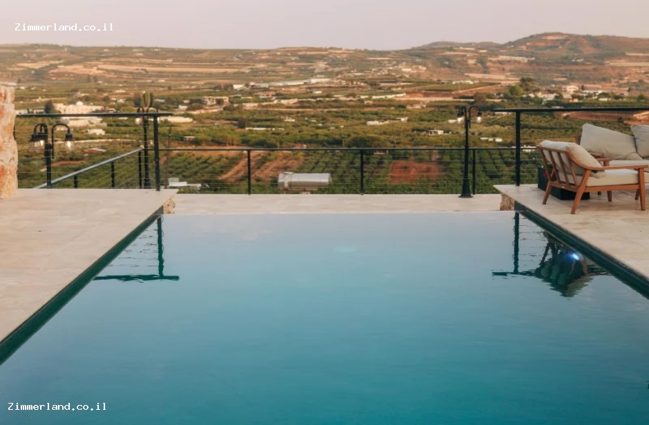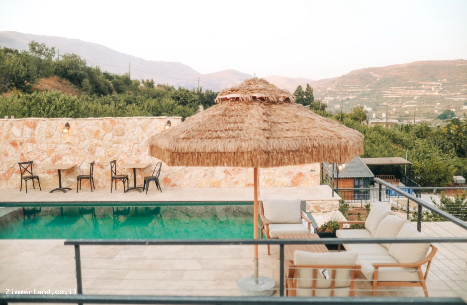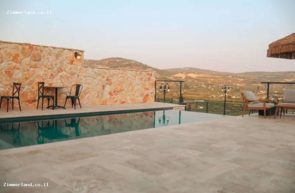 במתחם המשותף של 2 הבקתות יש בריכת שחייה אינפינטי המשתלבת עם הנוף (רק בעונת הקיץ) ריהוט גן יוקרתי