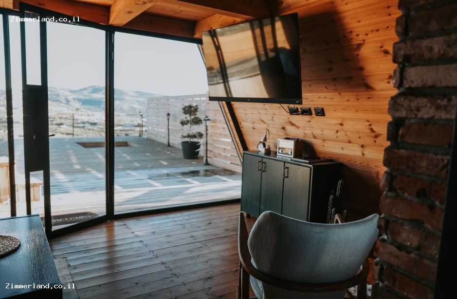 חדר שינה עם חלון נוף מושלם, חדר רחצה עם מוצרי טואלטיקה, פינת סלון זוגית מול טלוויזיה חכמה, יוטיוב ואינטרנט אלחוטי, מטבחון מצויד במקרר, קומקום, מכונת אספרסו, כלי אוכל והגשה (ללא בישול בצימר).