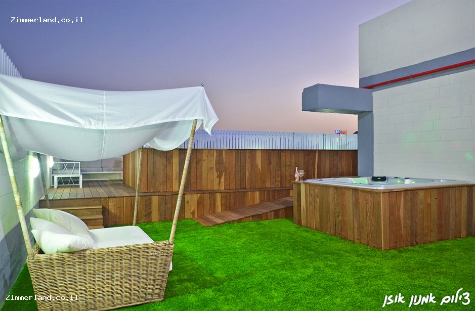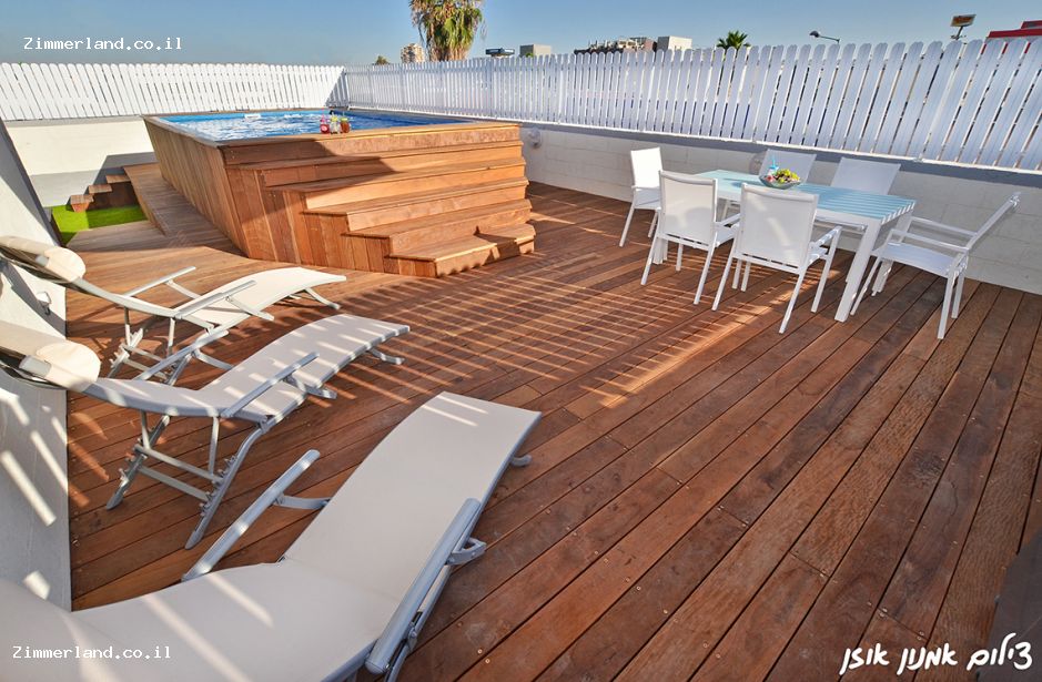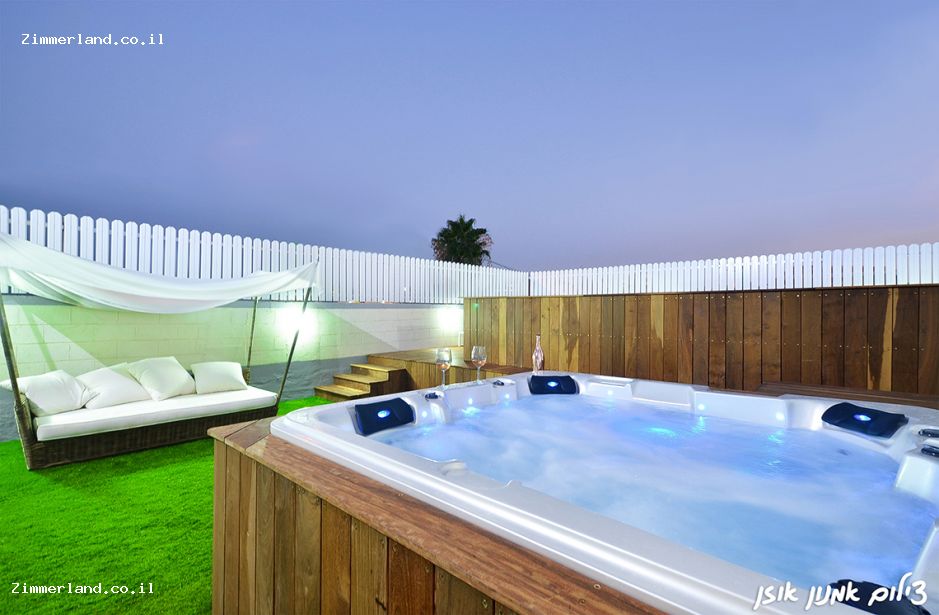 פינות ישיבה, גריל גז, מטבחון, מערכת שמע, מיטות שיזוף, ג'קוזי ובריכה.