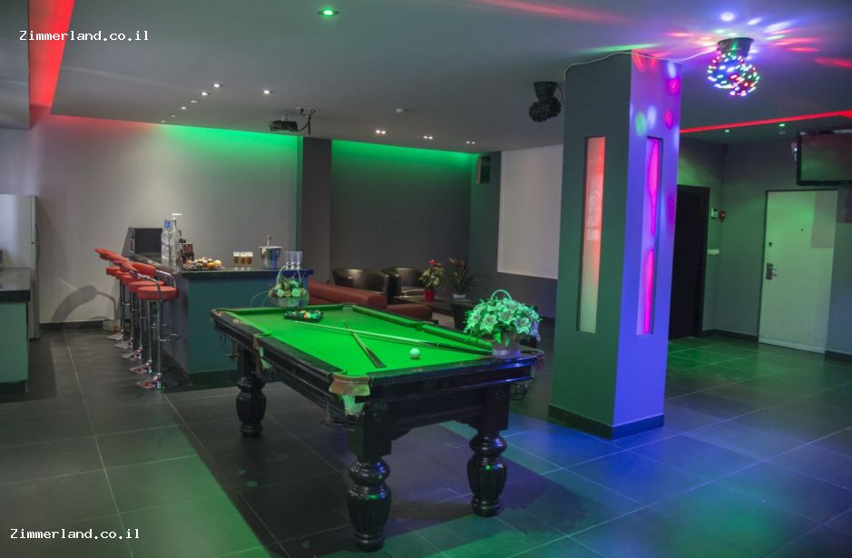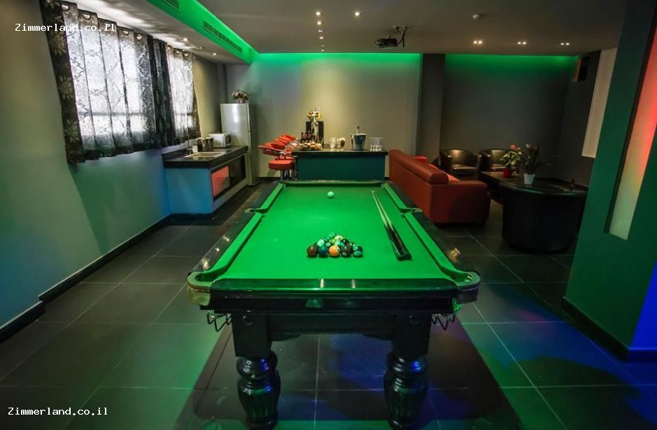 סלון מרווח ומפואר, מסך פלזמה הכולל חיבור ל- YES, מקרן עם חיבור למערכת הגברה, ערכת קריוקי, מטבחון מאובזר, בר מפואר, שולחן סנוקר, ג'קוזי זרמים, סאונה יבשה, שירותים ומקלחת.