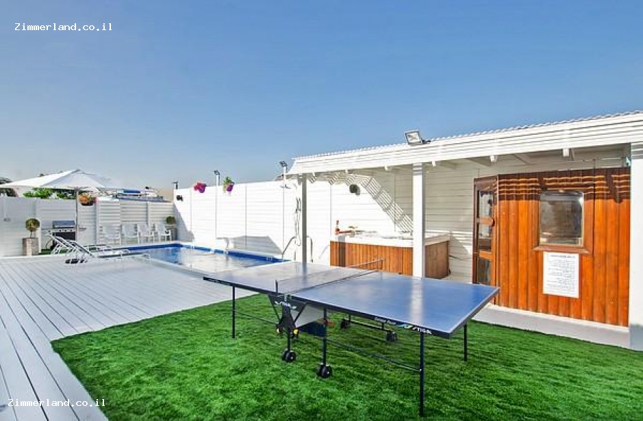 גולת הכותרת : חצר ענקית עשירה בצמחייה מטופחת, בריכת שחייה ענקית, שולחן סנוקר, ספא וסאונה פרטית, מיטות שיזוף ופינות ישיבה מוצלות.