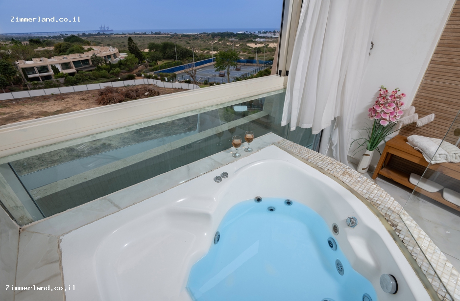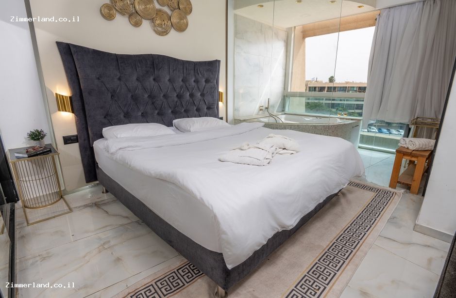 מיטת מעוצבת ענקית ועשירה עם מצעים איכותיים, פינת ישיבה זוגית רומנטית, מטבחון מאובזר בשלמות בנוסף למכונת הקפה האיכותית, מסך טלוויזיה דק מחובר למגבן ערוצי צפייה, ג'קוזי זוגי וחדר רחצה מפנק מאובזר עם מגבות גוף ומוצרי רחצה, מיזוג אוויר ותאורה חמימה שדואגת לאווירה.