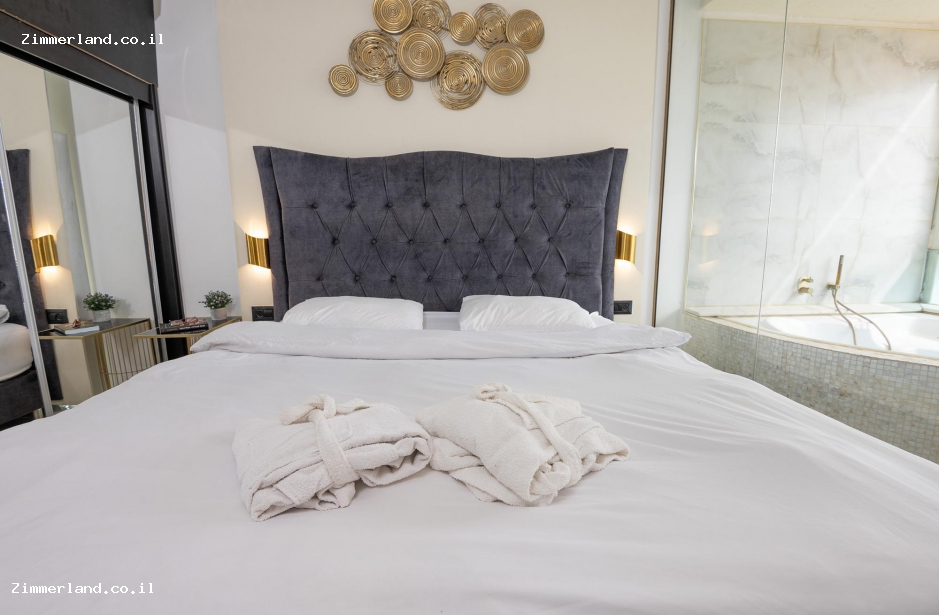מיטה זוגית רחבה עם מצעים נקיים ונעימים, ג’קוזי זוגי מפנק, חדר רחצה יוקרתי עם מגבות ומוצרי אמבט ריחניים, מיזוג אוויר, סלון מרווח עם מערכת ישיבה נוחה, טלוויזיה שטוחה עם חיבור לכבלים, כולל ערוצי מבוגרים וסרטים לבחירה.