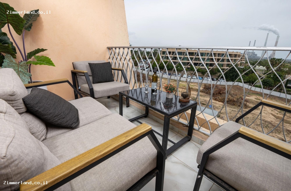לסוויטה יש מרפסת פרטית עם פינת ישיבה ונוף לים