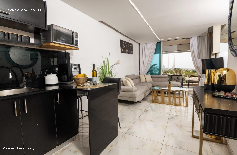 תאורה רכה ומחמיאה, מטבחון מאובזר עם פינת קפה, מקרר, בר מים, מיקרוגל וכלי הגשה, פינת אוכל ומרפסת פרטית הצופה לנוף הים עם פינת ישיבה אינטימית.