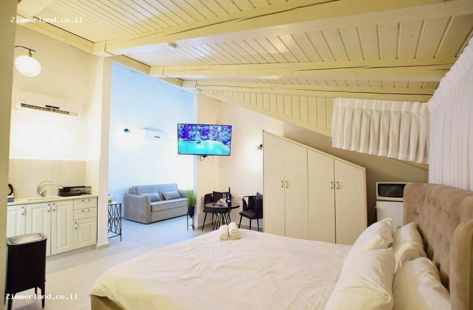 תיהנו ממיטה זוגית רחבה עם מצעים מפנקים, ג'קוזי זרמים זוגי, פינת ישיבה, טלוויזיה בחיבור למגוון ערוצי כבלים, אינטרנט אלחוטי, מטבח מאובזר עם מקרר, כיריים, מיקרוגל ופינת קפה, פינת אוכל וחדר רחצה נקי עם מגבות וסבונים.