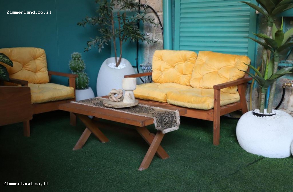 בחצר המטופחת בצמחייה יש פינות ישיבה נוחות ומוצלות, עמדת מנגל ועוד!