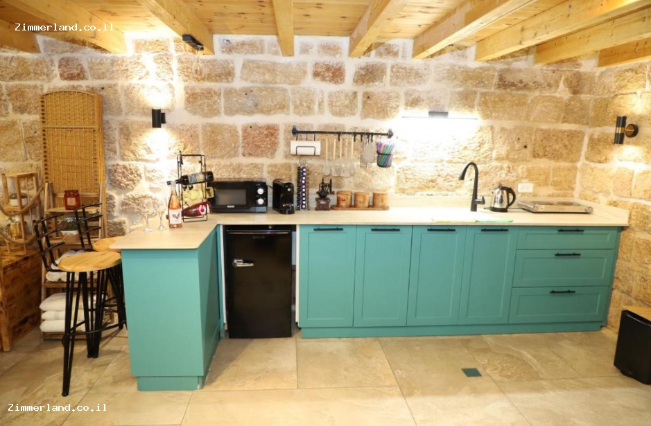 במטבח כל מה שצריך לפינוק מושלם - מכונת אספרסו עם קפסולות, שתייה חמה, כיריים חשמליות, מיקרו ומקרר.