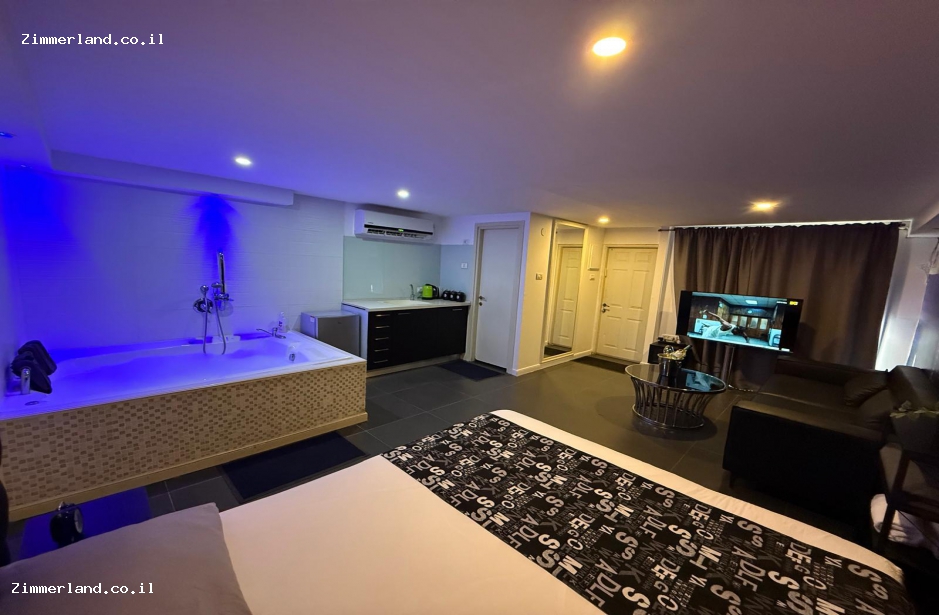 בסוויטות, ג'קוזי מפואר ומרווח, סלון אינטימי הכולל ספת מעצבים נוחה, תאורה רומנטית מיוחדת, מסך ענק, קומת גלריה המציעה מיטה זוגית מפנקת ועיצוב רומנטי באווירה של חו"ל... עוד בסוויטה, מיזוג אויר, חדר חצה נפרד, כלי מיטה ומגבות, מטבחון המציע שתיה חמה וקרה.