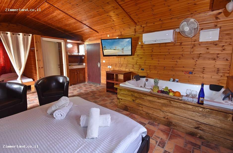 צימר בסגנון כפרי, רומנטי ונעים ובו חדר שינה עם מיטה זוגית מזמינה עם מצעים וכלי מיטה נקיים, חדר רחצה אסתטי מאבזר במגבות גוף איכותיות ותמרוקי רחצה ריחניים, ג'קוזי זוגי מפנק, מטבחון עם פינת קפה עשירה, קומקום חשמלי, מיקרוגל, מקרר גדול, פינת אוכל זוגית וכלי הגשה, פינת ישיבה זוגית מול מסף טלוויזיה בכבלים עם מגוון ערוצי צפייה, מיזוג אוויר ותאורה רומנטית להשלמת האווירה.