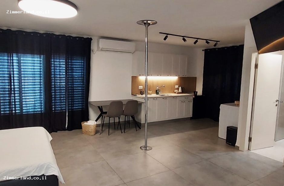 בצימר יש חלל אופן ספייס מרווח עם מיטה זוגית, עמוד ריקוד, תאורת חדר רומנטית, פינת ישיבה זוגית ומסך טלוויזיה בכבלים, חדר רחצה נקי עם מגבות וסבונים, מטבחון מאובזר בקפידה הכולל כלים להגשה, פינת קפה חופשית וקומקום חשמלי.