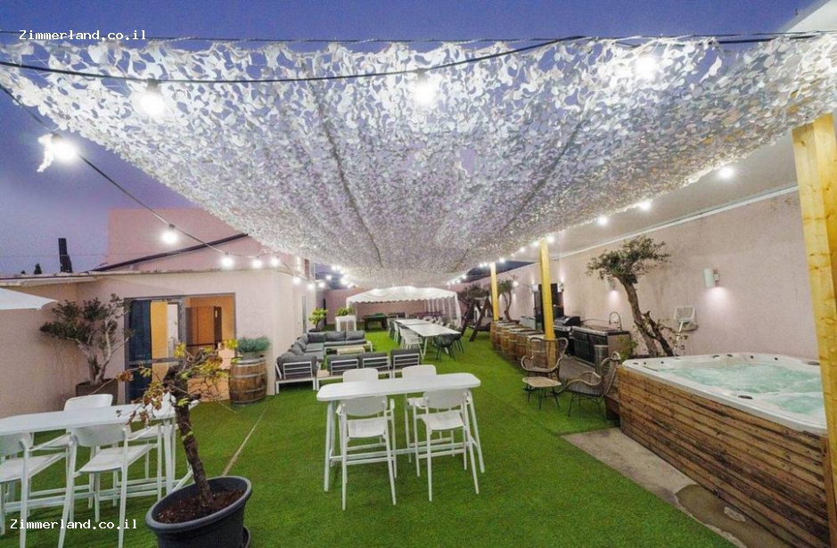 במתחם יש חצר ענקית פרטית לחלוטין עם בריכת שחייה - מחוממת ומקורה בחורף, ג'קוזי ספא זרמים מפנק, ריהוט גן, עמדת דיג'יי עם מערכת הגברה ותאורה, חדר אוכל גדול, פינת ברביקיו, שולחן סנוקר, פינג פונג ועוד!