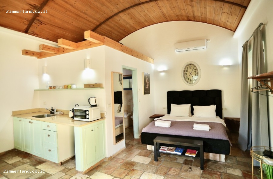 2 סוויטות עם בריכה פרטית לכל אחת - מציעות מתחם וכניסה נפרדת,בכל סוויטה יש חלל מרווח עם מיטה זוגית רחבה ופינת ישיבה עם ספה הנפתחת למיטה נוספת, מטבחון מאובזר הכולל מקרר, מיקרוגל ופינת קפה, פינת אוכל ופינת אוכל, טלוויזיה בכבלים, מיזוג אוויר וחדר רחצה נקי עם ג'קוזי אמבט מפנק, מגבות קוף וסבונים איכותיים. לכל סוויטה יש חצר פרטית ופסטורלית, מוקפת בצמחייה ירוקה מטופחת, פינות ישיבה וריהוט גן, פינת ברביקיו מסודרת ותאורת גן קסומה לשעות הערב.