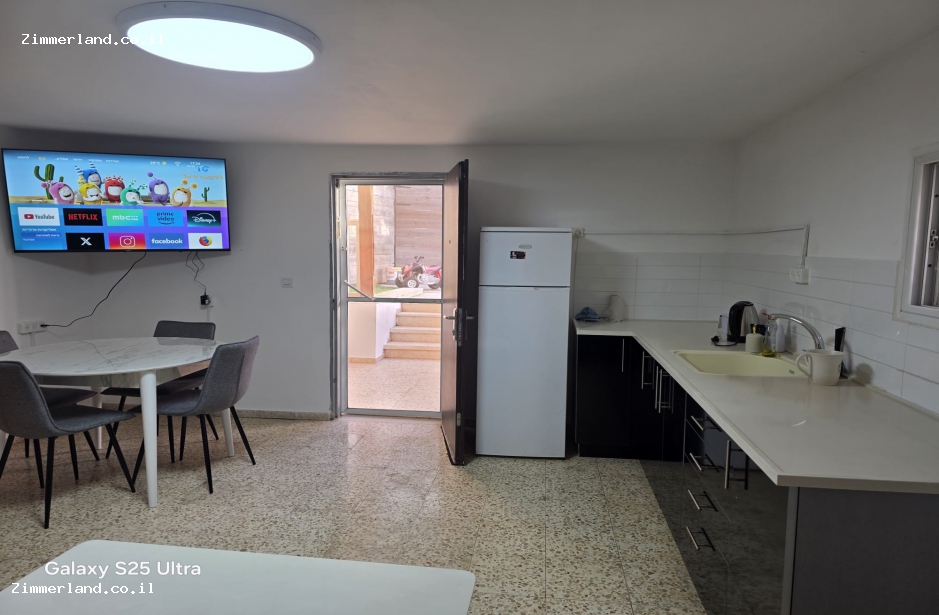 דירת נופש עם 2 חדרי שינה, מטבח, סלון, חדר רחצה.