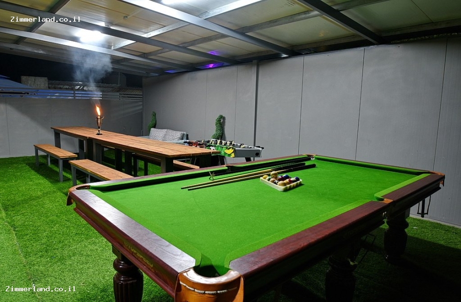 חצר הצימרים – בריכה מוקפת דק עם פינות ישיבה, ריהוט גן, ערסלים ונדנדות, משחקים לילדים, פינות ישיבה, שמשיות, שולחן פינג פונג ושולחן סנוקר, פינת ברביקיו ותאורת גן קסומה לשעות הערב.
