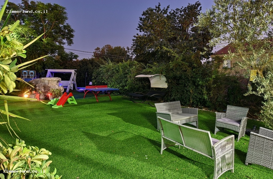 חצר הווילה – בריכת שחייה גדולה בנויה, מיטות שיזוף, ערסלים, פינת ברביקיו, ריהוט גן, פינות ישיבה מוצלות, שולחנות פיקניק, ערסלים, מדשאות עם משחקים ומתקנים לילדים, שולחן סנוקר, שולחן כדורגל ופינג פונג.