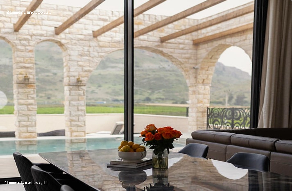 בארות מזל מציעים לכם אירוח במתחם חלומי בו בנויה וילה ענקית ומשרימה המציעה 6 חדרי שינה מפנקים, חצר ענקית הפונה לנוף מדהים עם בריכת שחייה ענקית – מחוממת ומקורה בחורף ו 2 סוויטות בוטיק מפנקות עם בריכה פרטית לכל סוויטה, נוף פנורמי להרים ולכנרת במרחק נסיעה קצרה מטבריה.