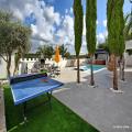 בחצר הוילה אתם תפגשו חצר גדולה ומטופחת עם מדשאה ירוקה, בריכת שחייה ענקית 4*9 (מחוממת בחורף) ג'קוזי ספא, שולחן סנוקר, פינג פונג, פינות ישיבה מוצלות, מיטות שיזוף, פינת מנג ומנגל להכנת ארוחות בשריות, פרגולה גדולה עם שולחן אוכל גדול.
