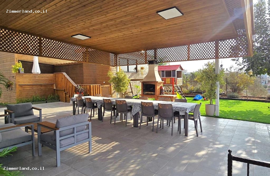 מתחם החוץ מציע בריכת שחייה מוקפת דק ומגודרת - מחוממת ומקורה בחורף, ג'קוזי ספא מפנק, פינות ישיבה וריהוט גן מפנק, ג'ימבורי לילדים, נדנדות ומגלשה, מדשאות, מנגל אבן , מטבח חוץ מסודר ותאורת גן לשעות הערב.