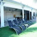 לרשותכם חצר גדולה ומטופחת עם מדאה ירוקה, ספסלים, ערסלים ופינות ישיבה מוצלות, שולחן סנוקר, סאונה וג'קוזי ספא, בריכת שחייה גדולה מוקפת בבימת דק ומיטות שיזוף, תאורה מיוחדת לשעות הערב, עמדת ברביקיו ועוד.