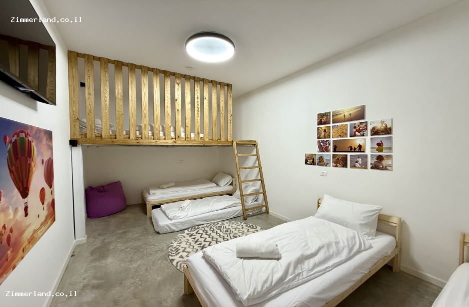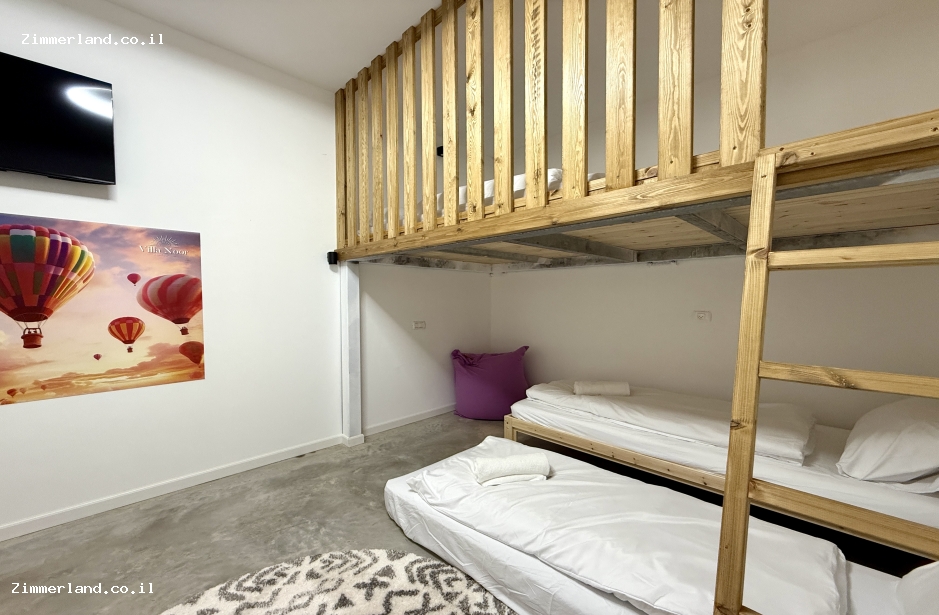 בווילה יש 8 חדרי שינה מפנקים – 5 חדרים זוגיים ו 3 חדרי ילדים עם מיטות יחיד. אחד מהחדים הוא גם ממ"ד ויש חדר שינה מונגש עם דלתות רחבות ומעברים מרווחים. ניתן להוסיף מזרנים במידת הצורך.