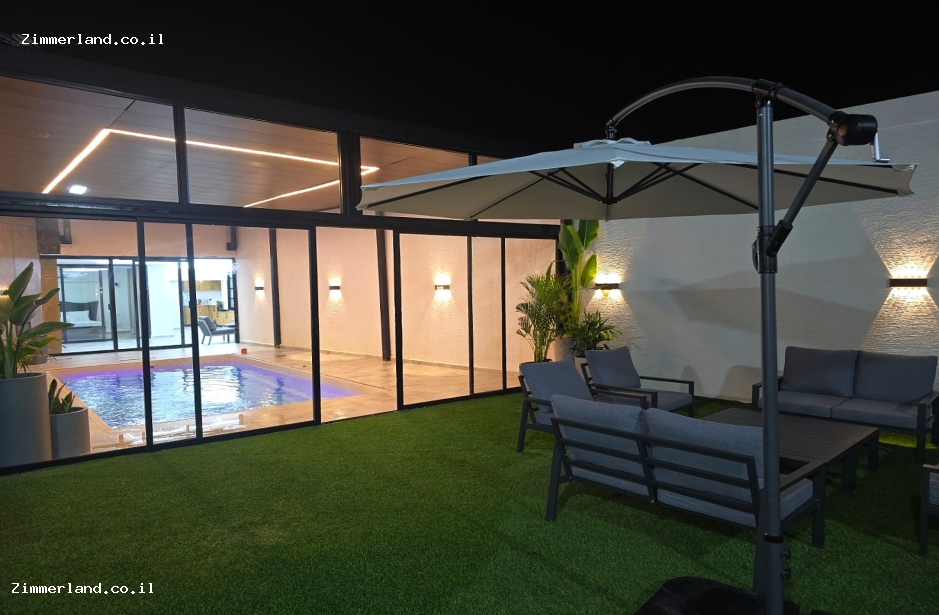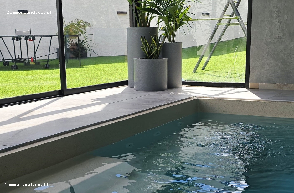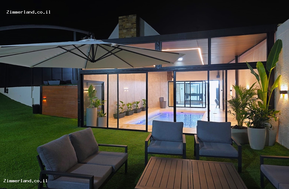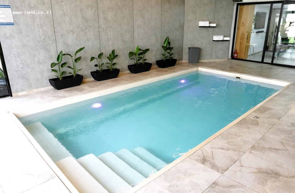 במתחם יש בריכת שחייה גדולה ומפנקת – מחוממת, סגורה ומקורה.