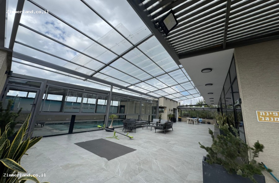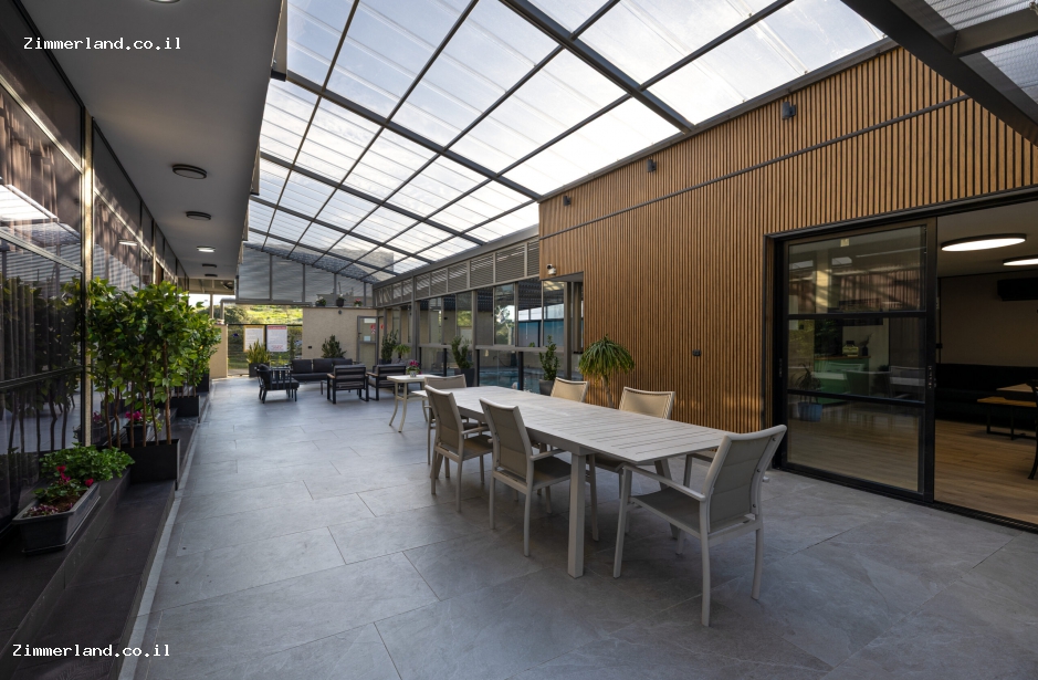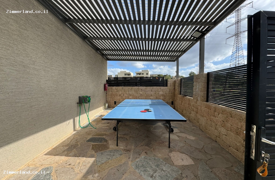 החצר הגדולה והמטופחת משלימה את חוויית האירוח עם מגוון פינוקים: בריכת שחייה מגודרת המחוממת ומקורה בחורף, ג'קוזי ספא מפנק, פינות ישיבה מוצלות, ערסלים, מיטות שיזוף, שולחן פינג פונג ופינת ברביקיו מאובזרת. בנוסף תמצאו מטבח חוץ מאובזר בחלל סגור וממוזג הכולל מקרר גדול, מכונת אספרסו, כיריים חשמליות ופינת אוכל נעימה.